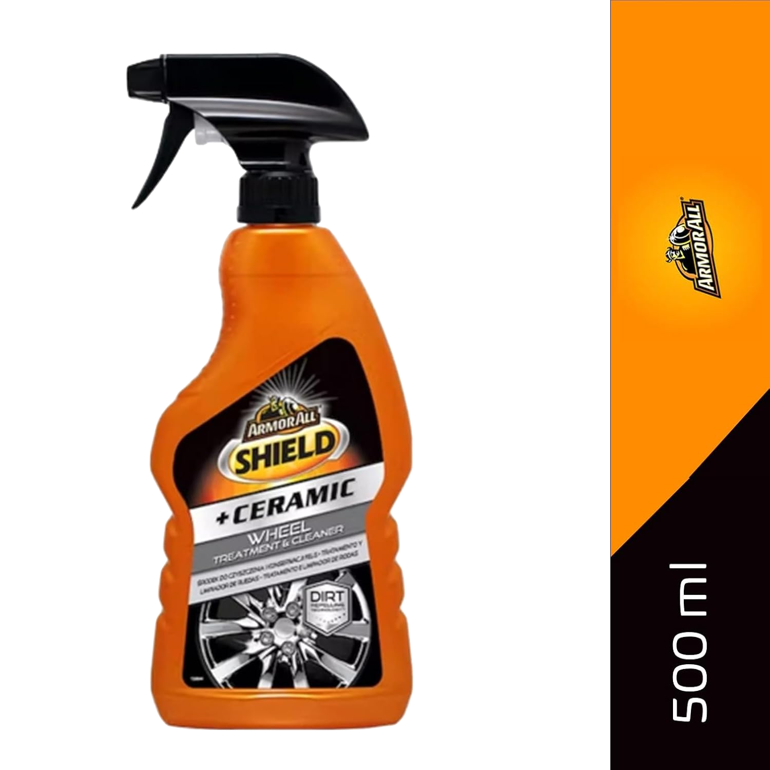 Armor All® Shield +Ceramic Wheel Treatment & Cleaner with dirt-repelling formulation utilises SiO-based technology to clean and protect, leaving behind an invisible barrier that helps wheels stay cleaner for longer.