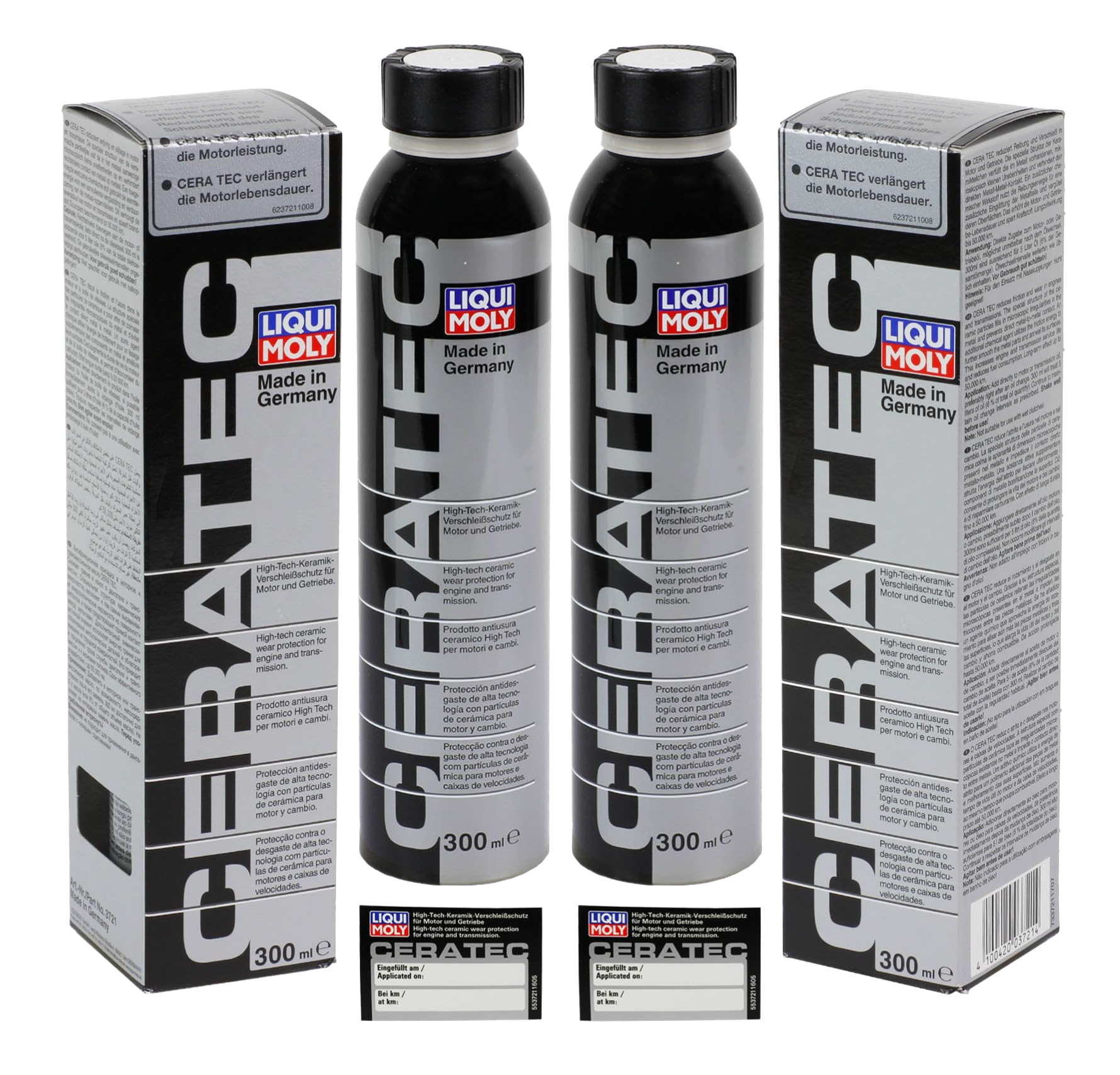 Contents (300 ml) is sufficient for 3–5 Liters (0.9 gal. to 1.3 gal.) motor oil. Long-term effect up to 50,000 km (30,000 miles). Shake well before use. Not suitable for use with DSG/DCT-, automatic-transmissions or wet-clutch differentials.