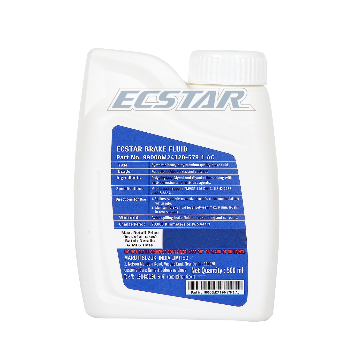 - Maruti Suzuki Genuine Brake Fluid is effective ‘low viscosity at low temperatures brake fluid‘, suitable for anti-lock braking systems