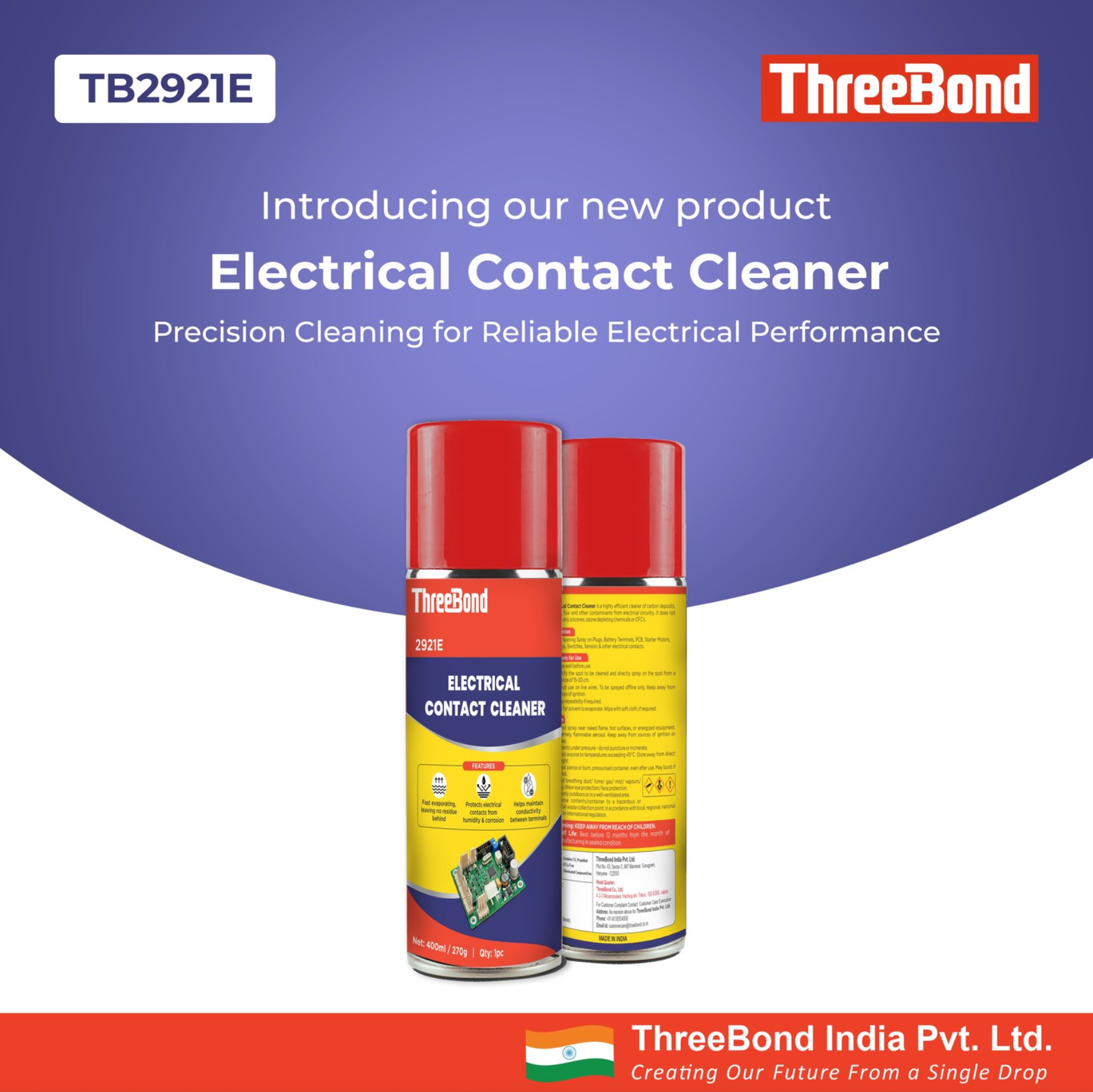 TB2921E is a high-performance electrical contact cleaner developed to ensure reliable, residue-free cleaning of terminals, connectors, and electronic components. Engineered for professionals across automotive, electronics, and industrial maintenance sectors, TB2921E rapidly removes dirt, oil, and oxidation—helping electrical systems perform at their best while protecting them from moisture and corrosion.