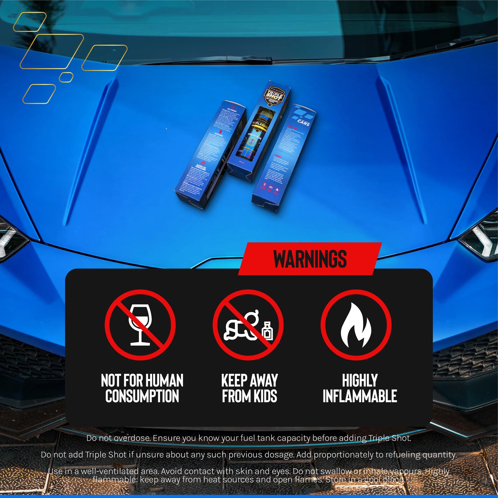 - Do not overdose. Ensure you know your fuel tank capacity before adding Triple Shot.